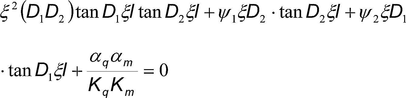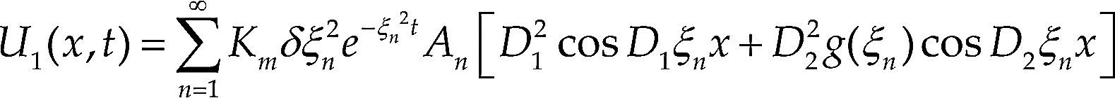 D1, D2, Km, Cm, ρ y δ son constantes; ξn son los valores propios que se obtienen de la ecuación transcendental (ecuación 13); los valores An y Bn dependen de ξn; g(ξn)=An/Bn.