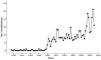 Figure 2 shows the shape of the growth of literature on Bradford's Law. Initially the curve is concave, with the point cloud increasing steadily until 2012, though there are minor oscillations between 1979-1980 and 1985-2008. One can observe that publications on Bradford's Law up are quite flat to 1968 after which steady growth begins.