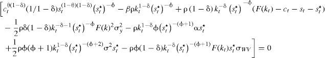 Se propone como candidato de solución la función V(kt,st*)=ρk1−δ(st*)−φ, y se calculan las derivadas parciales respecto a las variables de estado. En este caso, φ es la elasticidad de sustitución del gasto del crimen organizado y ρ es un parámetro de la función de valor. Así: