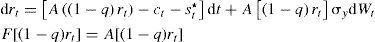 Este problema de control óptimo estocástico se resuelve de manera similar al primer modelo, por lo que se obtiene la siguiente ecuación: