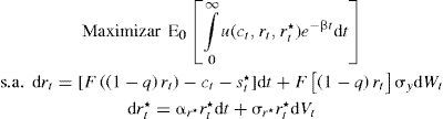 Este problema de maximización se aborda desde la teoría del control óptimo estocástico.2 Defiendo: