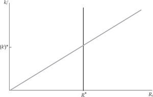 Gráficamente pueden definirse las ecuaciones anteriores en el espacio {k,R}. Las funciones kˆ=0 y Rˆ=0 establecen todos aquellos pares de puntos para los cuales las tasas de crecimiento son las del estado estacionario.