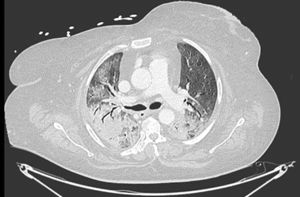 In our series, 14 patients presented with PM, of whom, 7 had spontaneous PM. Among those, 2 had PM at baseline chest CT and 5 on follow-up chest CT. The follow-up chest CT done after a median of 16 days (Q1=11.5–Q3=21.5) showed that 8 patients intubated with a control plateau pressure presented a PM, of whom, 7 developed PM post-intubation, with a median of 7 days (Q1=2–Q3=18).