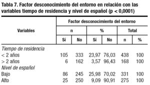 Este factor se relaciona con el tiempo de residencia y el nivel de español (tabla 7).