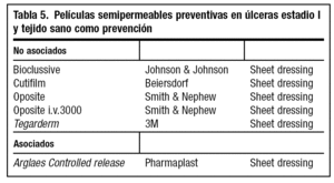 Prevención de las superficies de apoyo mediante películas semipermeables (tabla 5).
