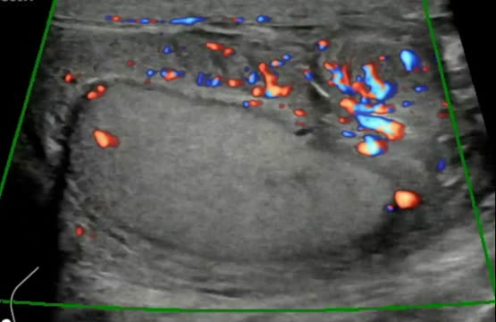 Vascularización: Se analizará mediante la ecografía Doppler-color espectral y power Doppler13. Se debe realizar en todas las exploraciones ecográficas del escroto, especialmente en los casos de escroto agudo. Es imprescindible realizar un estudio comparativo obteniendo imágenes con doble ventana en las que los parámetros del Doppler sean idénticos al analizar y obtener imágenes de cada uno de los testículos y sus epidídimos. Debe empezarse el estudio por el testículo sano, para ajustar los parámetros en escala de grises y Doppler-color y mantenerlos a lo largo del estudio1,9,12–14.