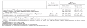 TABLA 3. Variables asociadas con la intención de vacunar contra el VPH a la hija: resultados de los modelos multivariables