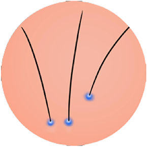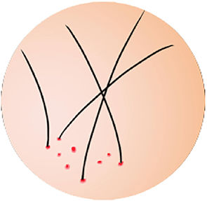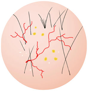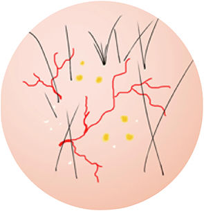 | Vasos lineales elongados y puntos azul-gris perifoliculares | |||