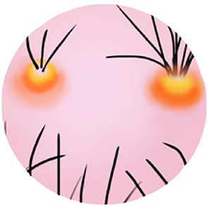 | Lupus discoide | Puntos rojos perifoliculares y tapones de queratina |