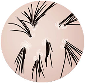| Alopecia central centrífuga | Más frecuente en mujeres de raza negra | Halo blanco grisáceo peripilar | |