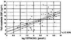A nivel intraquístico se produjo una correlación positiva entre las concentraciones de EGF y las de todas las hormonas analizadas (Estradiol, DHEAS y Testosterona), salvo la 17-OH-Progesterona (Figs. 2 y 3).