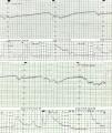 En el registro cardiotocográfico se identifica un trazado de categoría anormal o tipo iii,con línea de base poco determinada, que condiciona un patrón ondulatorio y sin aceleraciones, con escasa variabilidad durante todo el trazado y deceleraciones tardías en más del 50% de las contracciones.