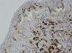 Ante las reiteradas biopsias percutáneas negativas, se decide la realización bajo anestesia de biopsia excisional, cuya anatomía patológica es de sarcoma pleomórfico indiferenciado (fibrohistiocitoma maligno pleomórfico), con estudio inmunohistoquímico que demuestra positividad para vimentina y negatividad para el resto de marcadores estudiados (Ck AE1/AE3, actina, desmina, S-100 y CD 34) y actividad proliferativa medida con Ki67 del 60% (figs. 4 y 5).