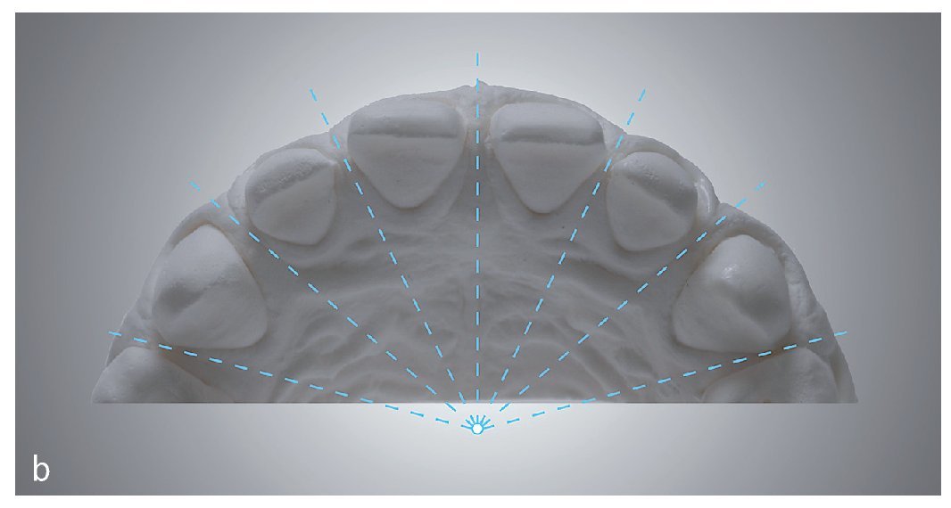 Fig. 3b. Las líneas de orientación radiales en el modelo de segmentos maxilares.