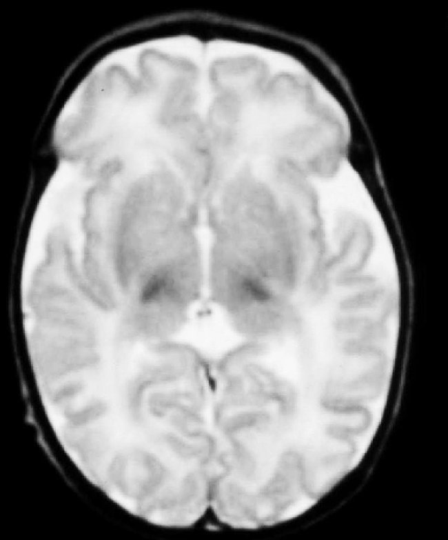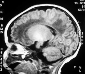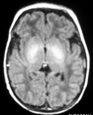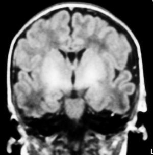 A las 48 horas de su ingreso presenta una crisis de hipertonía, motivo por el que se realiza una resonancia magnética.