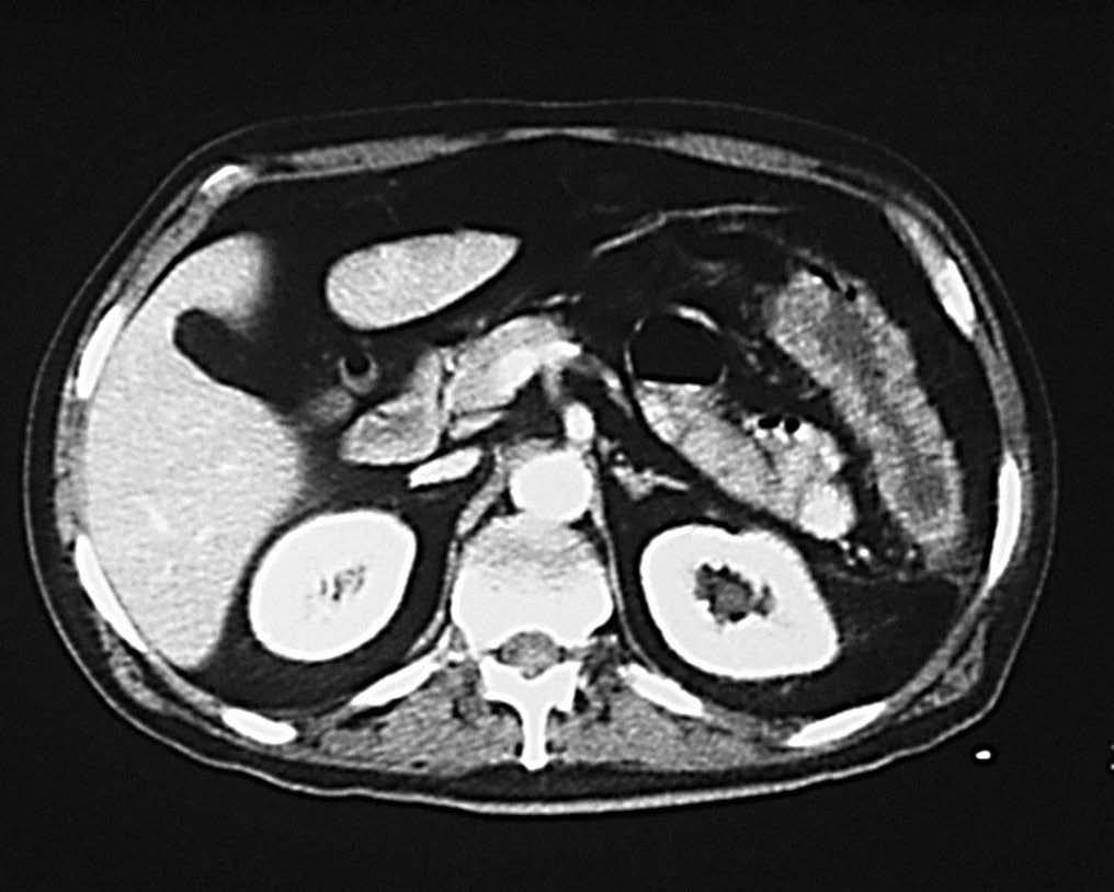 La contracción mantenida de la muscularis mucosa condiciona el espasmo que se define como el concepto de signo de "la cuerda" a nivel del íleon terminal o el signo del "asa orgullosa". El asa está separada del resto de estructuras intestinales no sólo por el espasmo, sino por la afectación de la grasa mesentérica en relación con el proceso inflamatorio de estas estructuras, lo que justifica el concepto de "asa orgullosa". En la TC también se identifica el aspecto estriado característico de la grasa mesentérica en relación con el componente de edema y de inflamación y la presencia de adenopatías mesentéricas5,12.