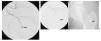 Una vez colocado el microcatéter en el punto desde el que decidimos realizar la embolización, rellenamos su espacio muerto con DMSO y posteriormente inyectamos Onyx. La cantidad de Onyx inyectada en cada caso, reflejada en la tabla 1, nunca superó 1 cc. El DMSO se disuelve en la sangre y en los fluidos intersticiales, causando la precipitación in situ del copolímero EVOH y del tantalio en él suspendido, que lo hace radioopaco y permite su correcta y precisa visualización con fluoroscopia. La precipitación produce un émbolo esponjoso y coherente que se solidifica desde la parte exterior hacia la interior, a la vez que progresa y se desplaza distalmente por el vaso, lo que permite "empujar" el émbolo y hacer una inyección controlada hasta el punto preciso que se desea, rellenando el tramo desde la punta del microcatéter hasta el punto de rotura vascular. Dado que el Onyx no es adhesivo, el microcatéter puede permanecer en la posición inicial mientras se realizan inyecciones lentas y controladas. Incluso se puede detener la inyección y realizar una angiografía de control posembolización por el catéter guía, así como inyecciones adicionales por el mismo microcatéter en caso de ser necesario. Esta maniobra la hemos realizado en la totalidad de los casos.