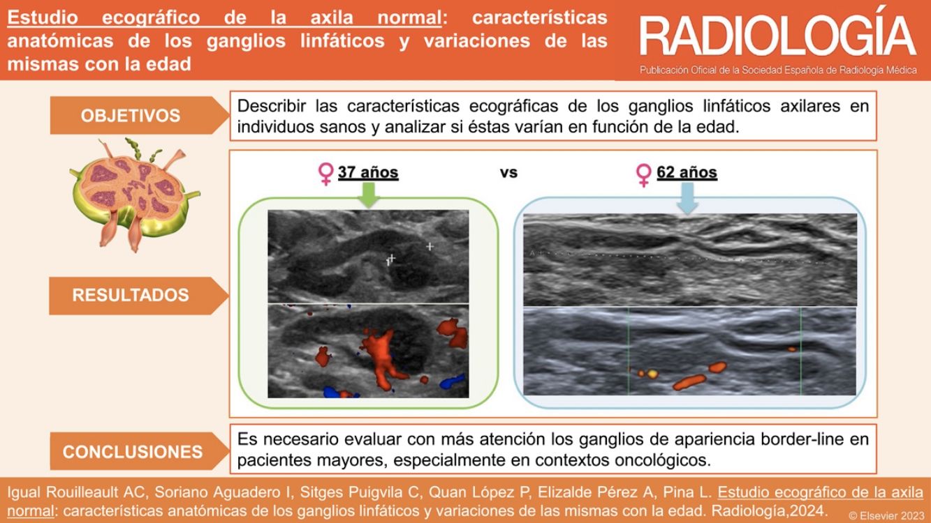 Describir las características ecográficas de los ganglios linfáticos axilares en individuos sanos y analizar si estas varían en función de la edad.