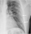 La media de días entre el inicio de los síntomas y la primera radiografía de tórax patológica fue 7,2 (mediana 7) y entre la primera y la segunda radiografías de tórax examinadas en cada paciente de 4 [mediana 3, (rango 0-22)]. Catorce pacientes (5,2%) tuvieron una radiografía de tórax normal previa (la media de días hasta la primera radiografía patológica fue de 5 y la mediana de 4).