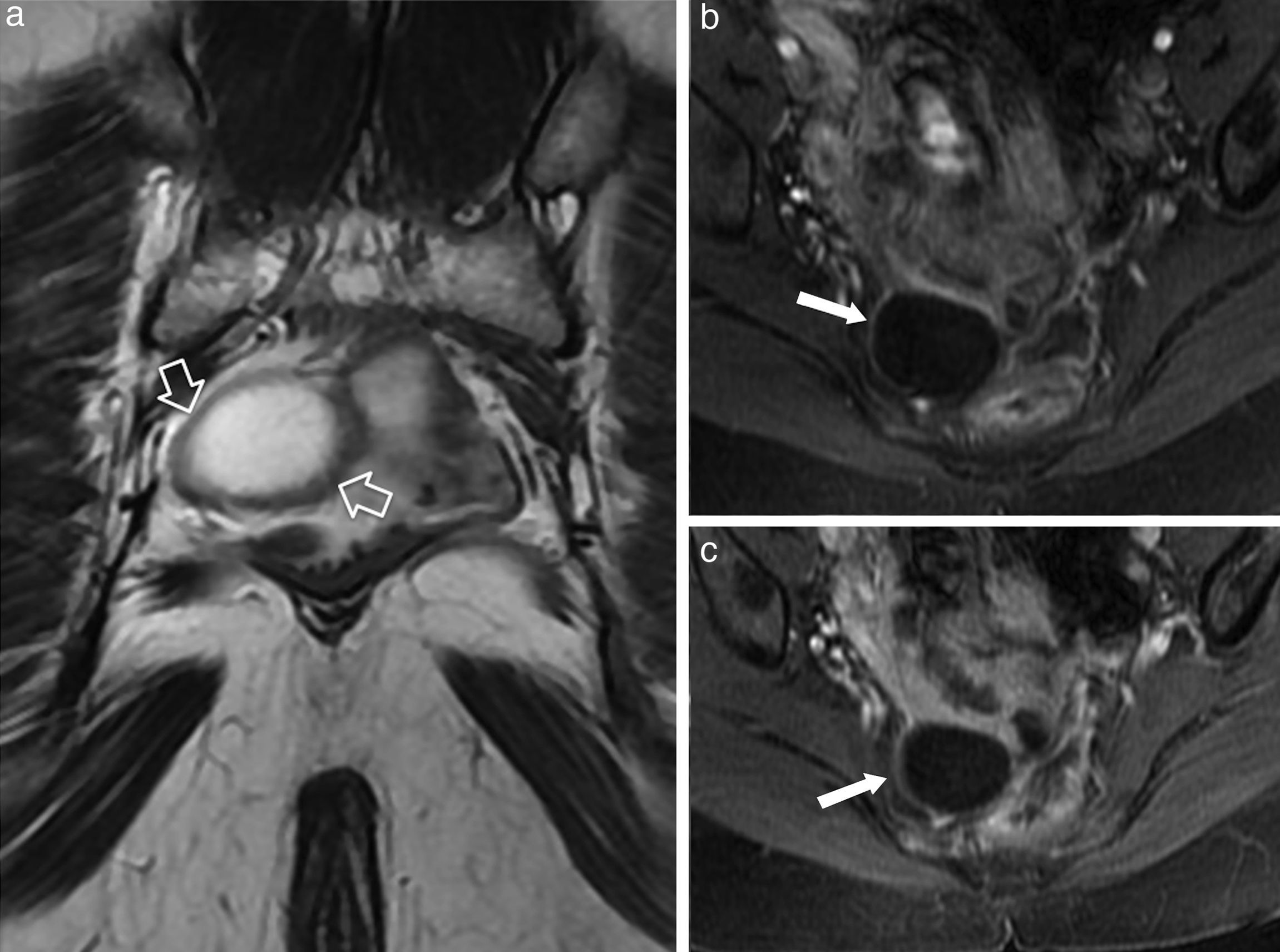 La patología benigna anorrectal comprende una amplio grupo de procesos de muy diversos orígenes, congénitos o adquiridos, inflamatorios o tumorales. Sin embargo, ha recibido en la bibliografía científica menor atención que el estudio de la patología tumoral maligna. Presentamos una revisión basada en imágenes de la patología benigna anorrectal más frecuente. En esta primera parte realizamos un recuerdo anatómico y una breve descripción de las peculiaridades del protocolo de alta resolución que empleamos con la RM de 3.0 T. Después describimos los principales tumores benignos anorrectales y lesiones quísticas del desarrollo junto con sus principales diagnósticos diferenciales y las anomalías congénitas y adquiridas del complejo esfinteriano anorrectal.