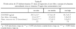 La fuente más importante de vitamina D deriva de la exposición de la piel a la radiación UV de la luz solar y por lo tanto es importante considerar la exposición al sol, dependiendo de la ubicación geográfica y de la época del año.