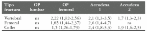 Conclusiones: Los factores de riesgo que aparecen con mayor prevalencia son la ingesta de calcio por debajo de 600 mg, la ingesta de benzodiacepinas y la disminución de la altura.