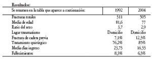 Resultados: El número total de fracturas fue de 267, 80 fueron hombres y 187 mujeres, con un cociente mujer/hombre de 2,3.