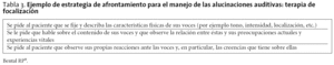 Con un esquema similar al adoptado para abordar las creencias delirantes se continúa el trabajo terapéutico con las creencias disfuncionales vinculadas a la presencia de síntomas alucinatorios: