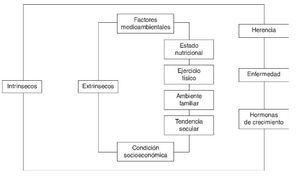 Pues bien, el crecimiento somático y la maduración son influenciables por varios factores que actúan de forma independiente o en conjunto para modificar el potencial genético del crecimiento de un individuo29. Esta interacción entre genética y medio ambiente es compleja y no aditiva.