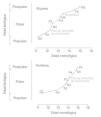 En la evaluación de la maduración sexual hay tres estadios, considerando que el estadio 1 es prepúber, 2 - 4 progresión en la pubertad (púber) y 5 constitución adulta (pospúber), tanto en el desarrollo de las mamas (M), genitales (G) y vello púbico (P) (fig. 2).