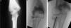 En las fracturas de tobillo intraarticulares (Mc Farland, Tillaux y triplanares), la técnica se utiliza intraoperatoriamente para definir la diástasis de los fragmentos y/o la presencia de un escalón intraarticular, evaluar la calidad de la reducción articular y, en ocasiones, evitar una reducción abierta33. Habitualmente el medio de contraste se administra al inicio de la cirugía y luego se realiza la reducción. Esta se mantiene temporariamente con clavijas y, tras comprobar la imagen, se fija definitivamente con tornillos canulados (fig. 5).