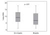 En la incontinencia (tabla 2), el grupo de pacientes con miopatía (M), 5,5% no es más incontinente que el grupo nM, 5% durante el 1.er mes, pero sí que su mejoría varía en función del grupo al que pertenecen, ya que observamos que el grupo nM muestra una mejoría en el 3.er mes y el grupo M lo hará a partir del 6.º mes.