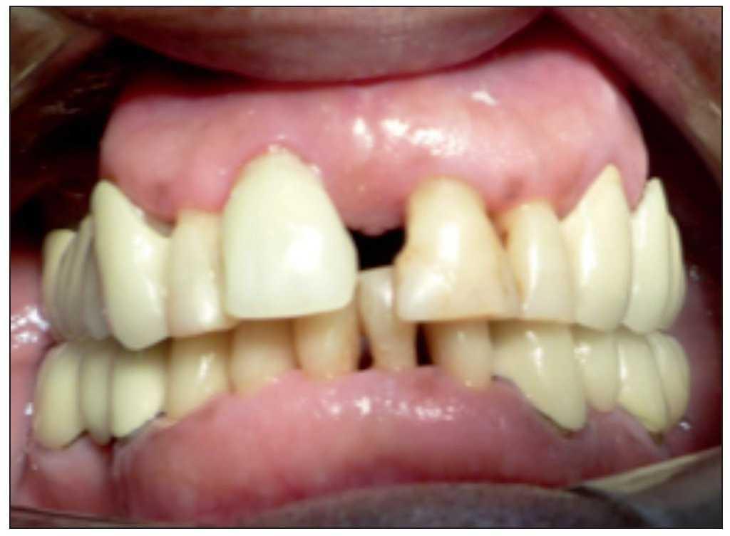 Figura 1. Visible discrepancia estética en posicion del margen gingival entre piezas 8 y 9.