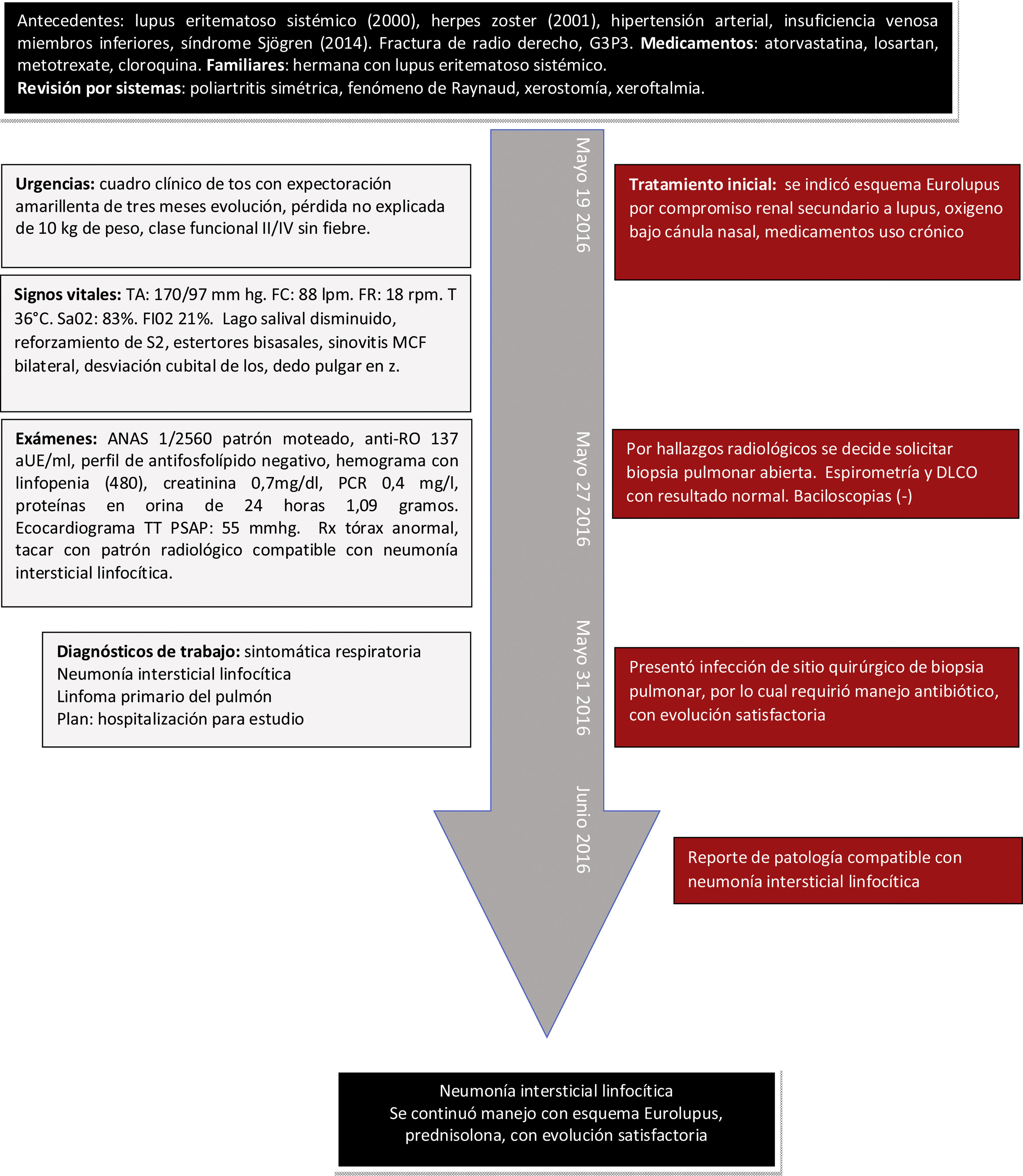 Línea del tiempo: es la descripción cronológica de los datos importantes de la historia clínica del paciente sobre una línea del tiempo. En la figura 3 se presenta un ejemplo27.