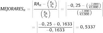 Seguidamente, el valor obtenido para RAit se incorpora al cálculo de MEJORARESit del siguiente modo: