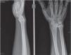 Los autores no realizan de forma sistemática ningún gesto sobre la articulación escafosemilunar; una vez finalizado el desbridamiento condral se procede a la osteosíntesis. Si bien hay autores que realizan aporte de injerto óseo para realizar la artrodesis11, nosotros no lo realizamos habitualmente. Asimismo, existen discrepancias sobre la necesidad de reducir la mala alineación dorsal (DISI) del semilunar antes de la artrodesis, ya que, aunque aparentemente la posición del semilunar no es relevante de cara a la movilidad residual de la articulación mediocarpiana17, posiblemente si no se corrige dicha mala alineación se favorecería una posterior evolución hacia una artropatía mediocarpiana. Si optamos por la reducción del DISI, realizamos una flexión de la muñeca y, mediante control fluoroscópico, se realiza una artrorrisis radiolunar temporal. En este momento, de forma percutánea se procede a la fijación definitiva de la artrodesis, en nuestro caso con tornillos canulados tipo Acutrak® colocados de forma anterógrada del radio al escafoides y del radio al semilunar, respectivamente (fig. 5). Tras comprobar la correcta colocación de los tornillos se procede al cierre de las incisiones con monofilamento 4-0 y a la colocación de una férula posterior de yeso antebraquial que sustituimos por ortesis a las 3 semanas para iniciar la rehabilitación.