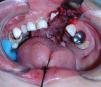 Una vez obtenido el colgajo lingual, se realiza el cierre primario del área lingual cruenta. Posteriormente se posiciona el colgajo sobre la fístula oronasal y se inicia la sutura partiendo de atrás hacia delante (fig. 5).