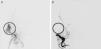 En la angiografía cerebral se apreció la existencia de una lesión vascular con flujo procedente de la arteria auricular posterior derecha y con drenaje en la vena temporal superficial del mismo lado (fig. 1A) en una paciente con neurofibromatosis de tipo 1 (NF-1) compatible con una fístula arteriovenosa (FAV) entre ambos vasos.