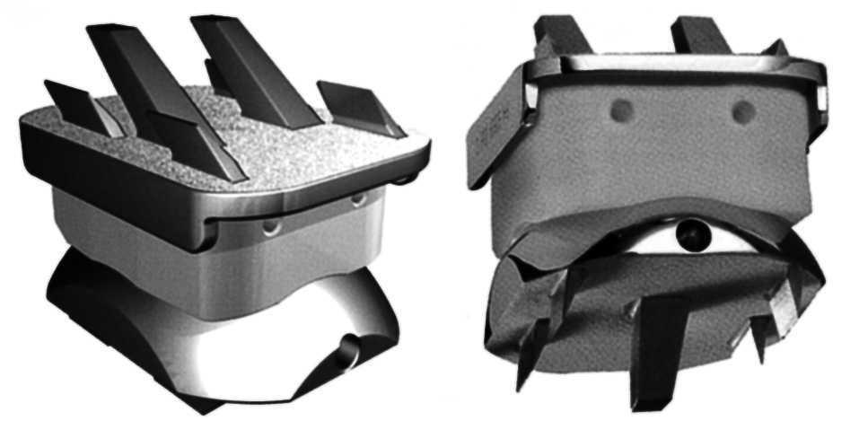 Por su diseño, los lados lateral y medial se adaptan al cajeado, impidiendo desplazamientos laterales y produciendo una estabilización transversal, sin alterar la mecánica de los dos maléolos. Sus anclajes superiores aseguran una correcta estabilidad17,21. El corte anterior respeta gran parte de la cortical anterior, facilitando la adaptación del componente para evitar el estrés óseo que se produce en la dorsiflexión del pie en el canto tibial anterior. Dispone de un carril para alojar el componente móvil, permitiendo el deslizamiento de éste en sentido anteroposterior (fig. 1).