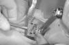 Figura 4. Introducción del componente intermedio móvil. Los componentes tibial y astragalino ya han sido implantados.