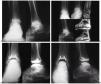 Las grandes series14,15,17,20,22 presentan resultados desfavorables que deben ser tenidos en cuenta para ofrecer al paciente alternativas terapéuticas en caso de presentarse. No debemos olvidar que hoy todavía no existen prótesis de revisión estandarizadas que puedan suplir la implantada en primer lugar. Por otro lado, una gran pérdida de reserva ósea en caso de fracasar la implantación primaria haría difícil solucionar el problema mediante otra implantación, por lo que la indicación sería hacer una fusión19,23 utilizando injerto óseo de banco y estabilizando la misma mediante osteosíntesis, bien con placa tipo A.O. o con clavo retrógrado. No obstante, el porcentaje de fracasos según las series consultadas oscila entre un 5 y un 8%, destacando fundamentalmente los que se muestran en la tabla 3. Estas complicaciones, que podríamos considerar de «índole menor», son solucionadas mediante el cambio del componente correspondiente, o de ambos, o realizando una artrolisis y capsulectomía, o bien alargamiento del tendón de Aquiles en caso de que exista una limitación de la flexión dorsal que impida dar el paso con normalidad.