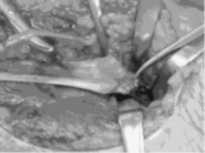 Figura 3. Visión intraoperatoria que muestra la rotura del tendón distal del bÃceps (abordaje anterior).