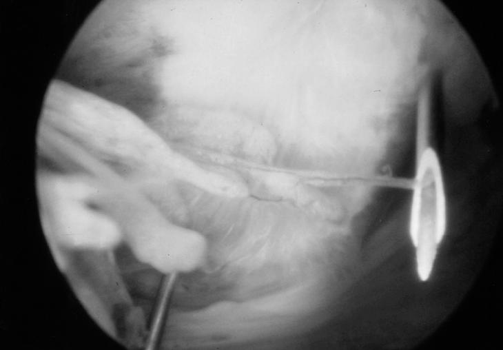 Figura 3. Delimitación del ligamento coracoacromial con dos agujas según la técnica de Ellman.