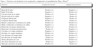 Respecto a las variables que intermedian este proceso de adaptación, cabe señalar el estado de salud, el nivel económico, el nivel cultural y educativo, el apoyo familiar, las características previas del trabajo, los hábitos personales, variables de personalidad así como las actitudes y estilo de afrontamiento ante los cambios12,14-16.