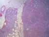 Presentamos el caso de una mujer de 40 años, sin antecedentes de interés, que consulta por palpación de nódulo mamario. La mamografía muestra una lesión nodular, bien delimitada, heterogénea, de 34mm, en el cuadrante superoexterno/prolongación axilar derecha. Se estudia mediante biopsia guiada por ecografía, con resultado de tumor mesenquimal con estroma mixoide, patrón vascular plexiforme y ocasionales células compatibles con lipoblastos. Con este diagnóstico se procede a la exéresis total de la lesión, que a la sección macroscópica muestra nódulo de bordes expansivos, de aspecto gelatinoso y características microscópicas de liposarcoma mixoide. Se presenta el caso y se revisa la literatura médica.