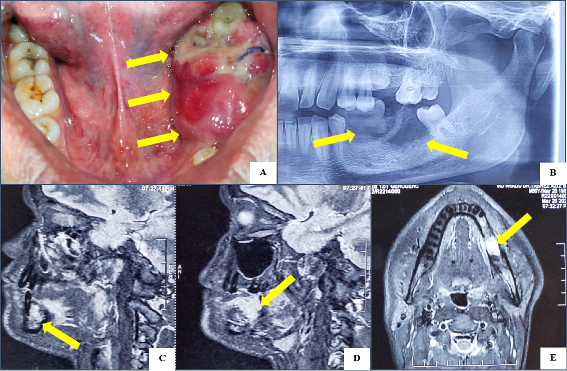 El osteosarcoma de células pequeñas (SCOS, por sus siglas en inglés) es una variante poco frecuente de osteosarcoma, que afecta principalmente a adultos jóvenes. Este informe describe un caso inusual de una paciente de 35 años que acudió con una lesión en la mandíbula. Microscópicamente, la lesión mostraba láminas y plexos de células redondas pequeñas y atípicas, con una formación limitada de osteoide. La positividad para PAS en el osteoide tumoral y la inmunopositividad de las células tumorales para SATB2 llevaron al diagnóstico de SCOS.