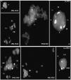 Dos 10 constructos activados 2 h após a microinjecção, 3/10 (30%) formaram zigotos 1PN/2PB, enquanto que 7/10 (70%) permaneceram não-activados (0PN/1PB). Ou seja, na maioria dos casos não houve retoma da meiose feminina (1PN/2PB) nem haploidização (0PPN/0PPB). A análise por DAPI evidenciou a presença de cromatina dos linfócitos em 8/10 (80%) dos casos. A análise por FISH forneceu resultados em 6/8 (75%) dos constructos. Destes, em 6/6 (100%) dos casos, os linfócitos apresentaram um genoma diplóide, dos quais 3/6 (50%) com condensação da cromatina e 2/6 (33,3%) com configuração metafásica (fig. 16). Estes resultados mostram que a activação, quando efectuada 2 h após a transferência nuclear, activa parcialmente a retoma da meiose-II feminina (30%), a condensação da cromatina (50%) e a formação de uma placa metafásica (33%) nos linfócitos. Porém, não foi capaz de induzir a segregação dos homólogos dos linfócitos.