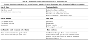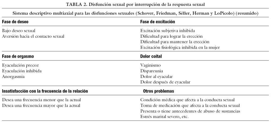 La disfunción sexual puede ocurrir por la interrupción de alguno de estos estados de la respuesta sexual, por factores orgánicos o psicológicos4 (tabla 2).