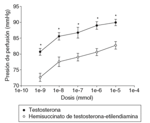 Cuantificación del efecto inducido por la testosterona y el conjugado hemisuccinato de testosterona-etilendiamina sobre la presión de perfusión