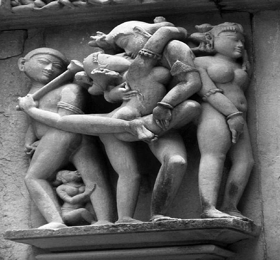 Frente al oscurantismo que sufre toda Europa durante la edad media y la edad denominada moderna (siglos XVIII y XIX), el reloj de la Historia, de la Humanidad y de sexualidad avanzó en sociedades como la hindú y la oriental. Así lo podemos comprobar el templo del Khajuraho (fig. 4), situado en la India, donde, se puede decir que el Kamasutra aparece tallado en piedra (fig. 5)9.